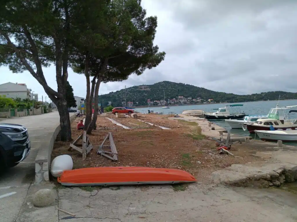 Tako je bilo i kad su bageri prije dva tjedna krenuli kopati na Gomilici. Par klikova na stranicama Općine Tisno otkriva poziv za dostavu ponuda u postupku jednostavne nabave „radovi na uređenju dijela pomorskog dobra Put Jazine“. Radovi procijenjeni na 55.000 eura bez PDV-a, uz gradnju zoga za balote dimenzija 25 x 3,2 metra, uključuju i roštilj/vanjski kamin visine cca 250 cm te stol sa dvije integrirane klupe dim 2,0 x 2,0 metra (POVEZNICA).