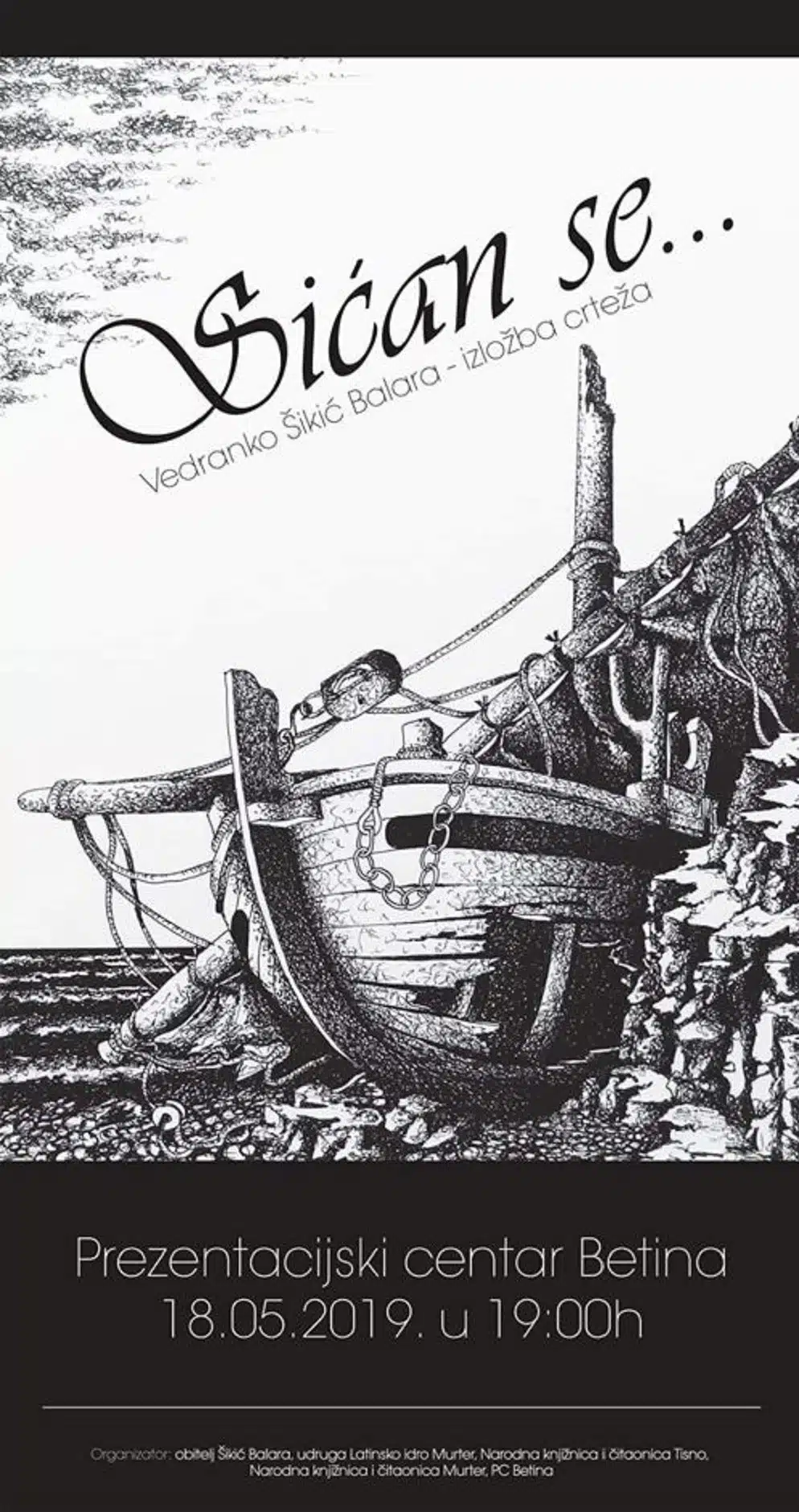 Glazbenik, pjevač, redatelj… svestrani umjetnik i predvodnik kulturnog života Murtera Vedranko Šikić Balara predstavit će se svojim likovnim radovima. Izložbom naslova “Sićan se…” provest će nas kroz svoje uspomene, najavljuju organizatori, na jedan doista osebujan način. Otvorenje izložbe je u subotu, 18. svibnja 2019. u 19 sati u Prezentacijskom centru Betina.