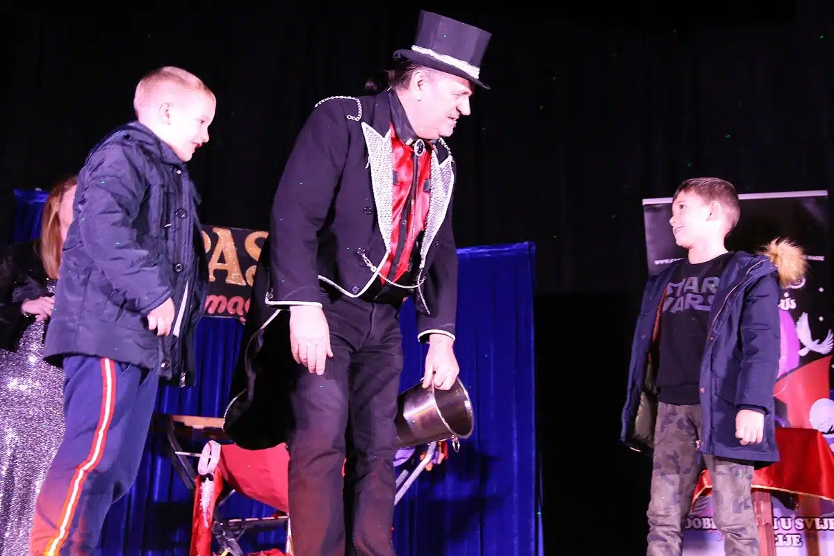 Osim najmanjih gledatelja i nekolicina odraslih s čuđenjem je promatrala lebdeće stolove, ležeće tijelo dječaka iz publike, bajkovite bijele golubove koji se rasprsnu u stotine papirnatih traka. Teško je bilo odraslima proniknuti u tajne iluzije, ali zato nasmijati najmlađe asistente nimalo. Kako savladati čarobni štapić koji se postidi i klone u rukama djeteta ili kako onoliko modernih torbica za djevojčice stane u praznu vrećicu, gdje nestane kocka u kutiji i slična pitanja glasno su postavljali najmlađi, natječući se kao na kakvom kvizu pokušavajući hitro naučiti koji trik.