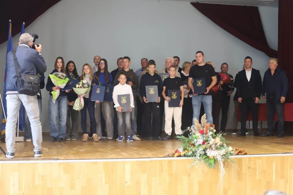 Foto: Načelnik i predsjednik Vijeća s ovogodišnjim laueratima (Rudinapress/H. Pavić)
