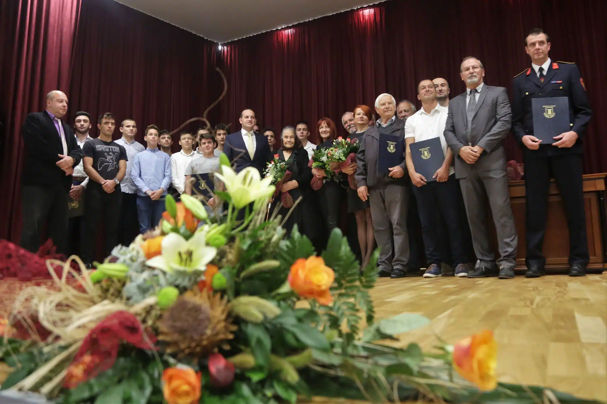 Dobitnici- priznanja su dijeli predsjednik Općinskog vijeća Petar Jakovčev, načelnik Ivan Klarin i zamjenik načelnika Miljenko Meštrov (Foto: Rudinapress/H. Pavić)