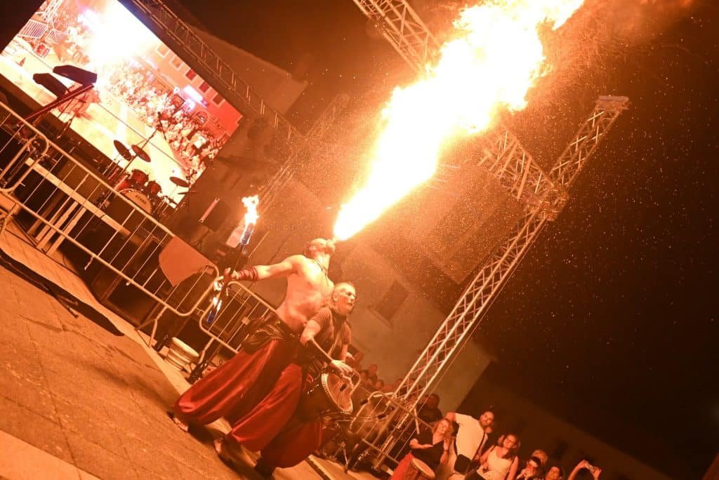 Iz godine u godinu Jezerani se trude i daju sve od sebe ne bi li nadmašili sami sebe i za Veliku Gospu napravili feštu bolju i veću od lanjske. Izvrstan uvod u spektakl bio je ulični glazbeno-scenski show s bubnjevima i vatrom sastava Territmo De Ritmo koji se odlično uklopio u koncepciju večeri i dostojno najavio bakljadu Torcide Jezera i vatromet koji svake godine tradicionalno u ponoć označava vrhunac jezerske Ribarske fešte. Osim što izvode atraktivne vatrene bubnjarske performanse Territmo De Ritmo proizvode, prodaju i popravljaju bubnjeve te promoviraju i podučavaju bubnjanje na glazbenim tečajevima, grupnim ili privatnim, koji su njihova glavna djelatnost.