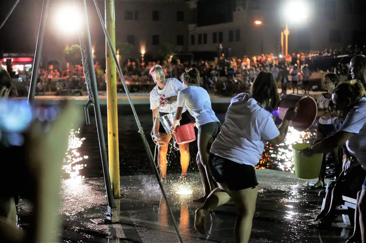 Tradicionalno su se u raznim morskim disciplinama mostom natjecale ekipe tišnjanskog otoka i kopna, a odnedavno su rivali Tisno i Jezera. I to pravi sportski rivali. Sudjelovanje Jezerana je unijelo veliku svježinu i novu energiju. I sinoć su u nadmetanju u maštovitim sportskim disciplinama mladi Jezerani i Tišnjani dali sve od sebe. U plivanju, veslanju, ronjenju slova, Tišnjanskoj alci… svi su bili najbolji. I sudačka komisija zasjedala je nakon svake igre. Rezultat je zati bio 20 prema 20, a revanš je tek dogodine.