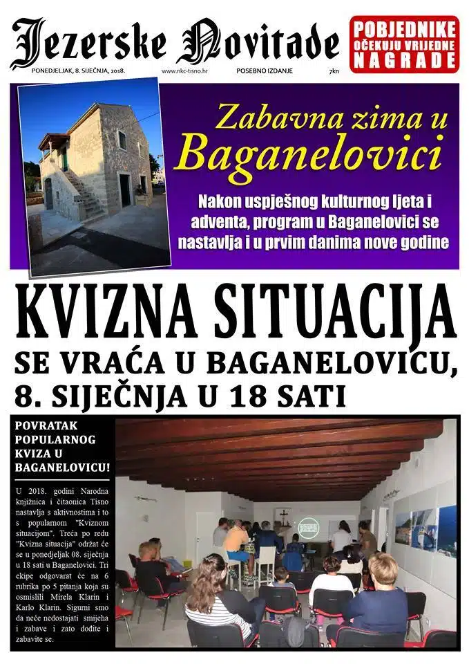 Početak kviza u Baganelovici je u 18 sati.