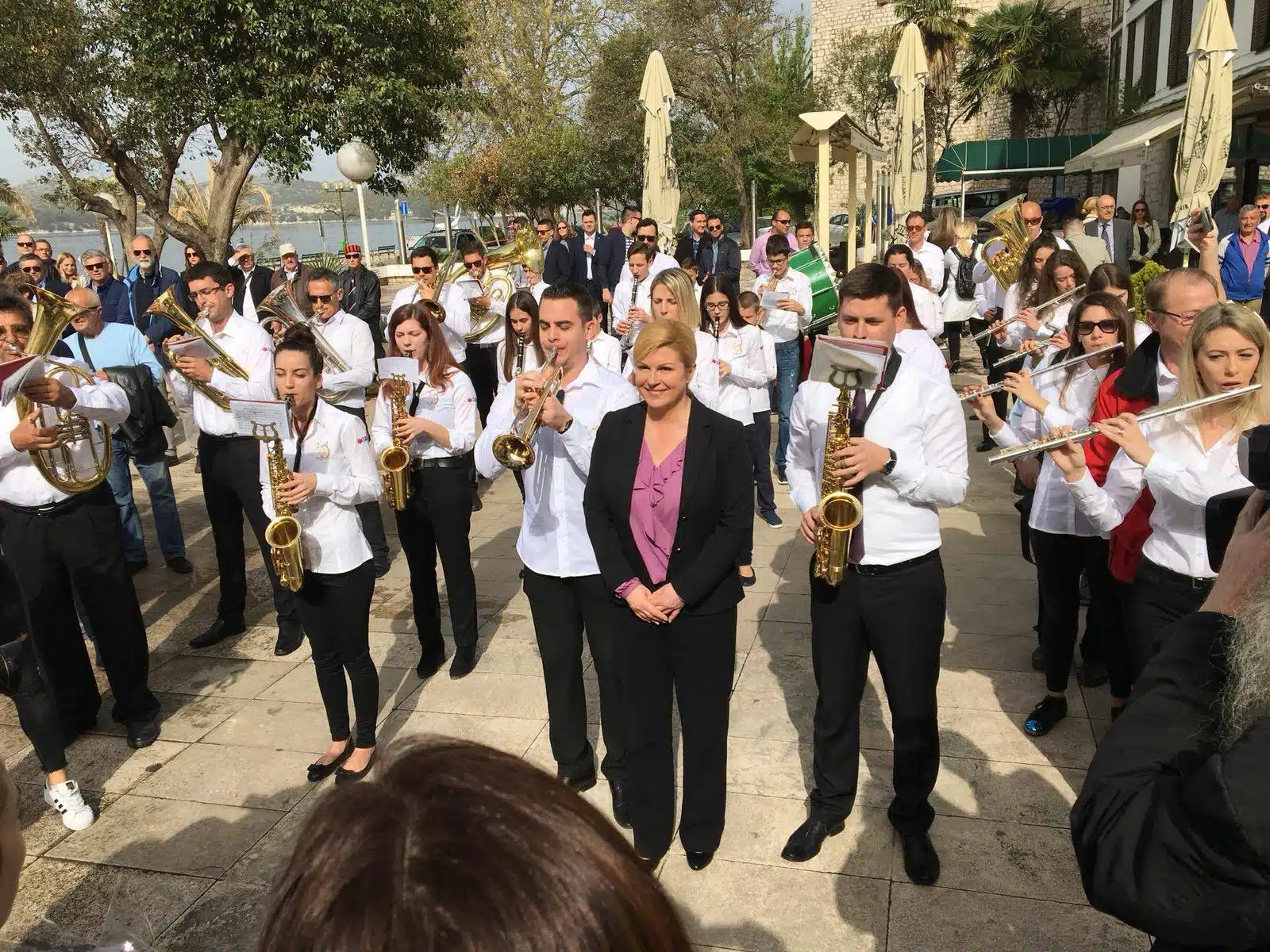 Privremeni Ured predsjednice RH otvoren je u utorak prigodnom svečanosti na Trgu Pavla Šubića ispred zgrade Županije intoniranjem himne „Lijepa naša domovino“ u izvedbi Šibenskog pjevačkog društva Kolo i svečanim podizanjem predsjedničke zastave, a koju je podigao maturant Gimnazije Antuna Vrančića Srećko Perković. U programu je sudjelovao i Puhački orkestar Pirovac, što je bila prigoda za susret Pirovčana s predsjednicom i zajedničko fotografiranje. Maestro Denis Jelušić ukratko je predsjednici predstavio orkestar koji je lani proslavio 60. obljetnicu djelovanja i uručio joj prigodni poklon.