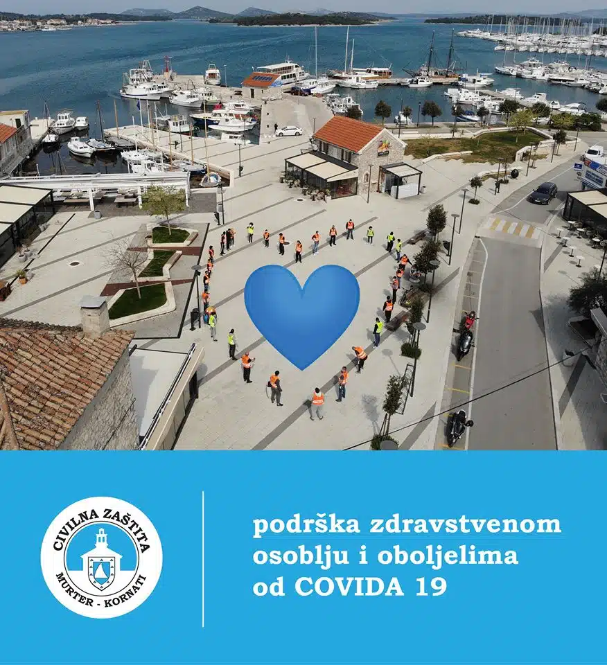 “Plavim srcem Murtera”, poručuje murterski Stožer, želi se odati počast i zahvalnost svima koji pokazuju veliku hrabrost, snagu, slogu i sposobnost – medicinskom osoblju, kolegama iz drugih Stožera za civilnu zaštitu, pripadnicima vatrogasnih, policijskih te vojnih postrojbi do onih upućenim ljudima bez kojih ne bi mogli svi mi funkcionirati u osobnim životnim potrebama, koje nam omogućuju trgovci, ljekarnici, dostavljači, volonteri koji izrađuju maske i mnogi drugi.