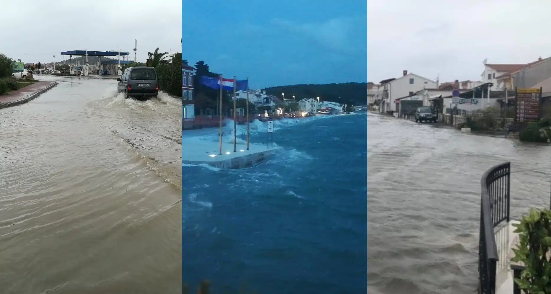 Posebno je ugrožena Rudina u Tisnom. Opsadno stanje, kafići ne rade, zečji nasipi. More je do automobilskih farova. I sve do kafića Kole. Šime Obratov kaže da u svojih 80 godina ne pamti ovakvo jugo… Poplavila je Rudina i u Murteru, u Betini pliva Varoš… Ukratko, ne izlaziti bez prijeke potrebe. Štete će se zbrajati sutra.