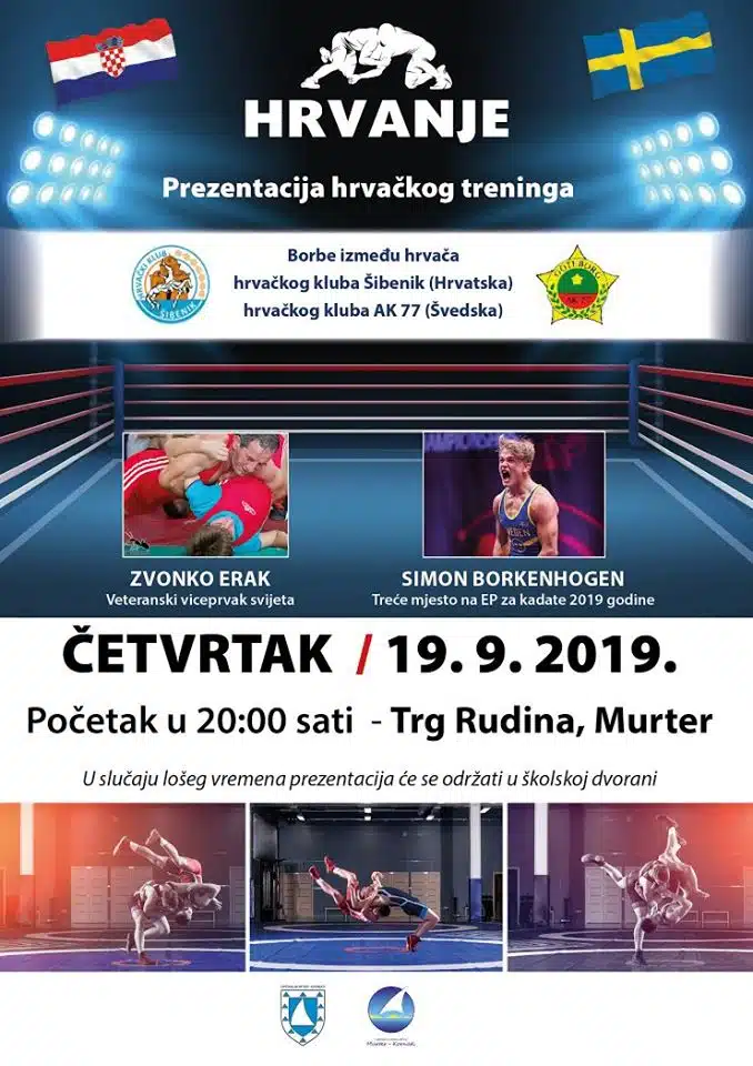 U razgovoru su došli na ideju spojiti oba kluba – HK Šibenik i AK-77 – u jednoj sportskoj manifestaciji – kao prezentaciju hrvanja, kako bi ovaj specifičan borilački sport približio djeci i roditeljima. Zahvaljujući podršci Općine i TZO Murter Kornati, ideja će u četvrtak biti realizirana. Tako će Trg Rudina na kratko postati poprište hrvačkog platoa, a osim same prezentacije, bit će priređeno i natjecanje tridesetak članova oba kluba, rođenih od 2002- 2009. god. U slučaju loših vremenskih prilika događaj se seli u sportsku dvoranu. .