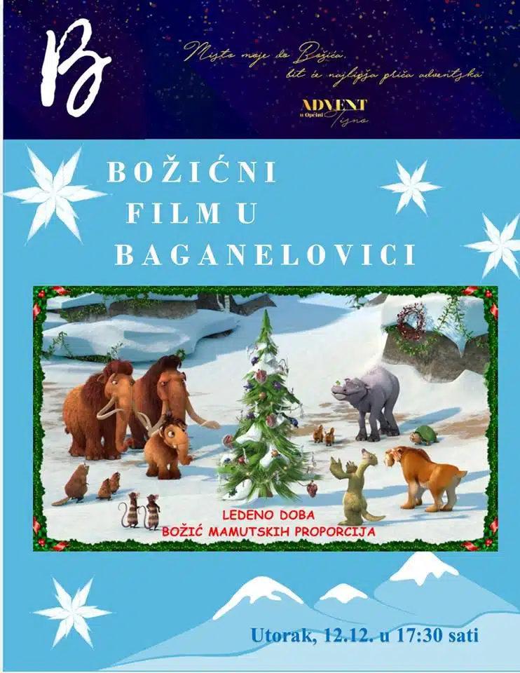 Narodna knjižnica i čitaonica Tisno u suradnji s Općinom Tisno u Baganelovici u Jezerima za danas organizira gledanje božićnog filma naziva „Ledeno doba“. Božić mamutskih proporcija zasigurno vole pogledati mališani, no vjerujemo kako ni njihovi roditelji neće imati ništa protiv ovakve večeri. Početak je u 17.30 sati. Dok će Jezerani uživati u filmskim minutama, za one u Tisnom organizirana je pak kreativna radionica. Na radionici za odrasle prisutni će moći naučiti kako izraditi unikatni božićni svijećnjak. Početak radionice u prostorijama Narodne knjižnice i čitaonice Tisno je u 18 sati.