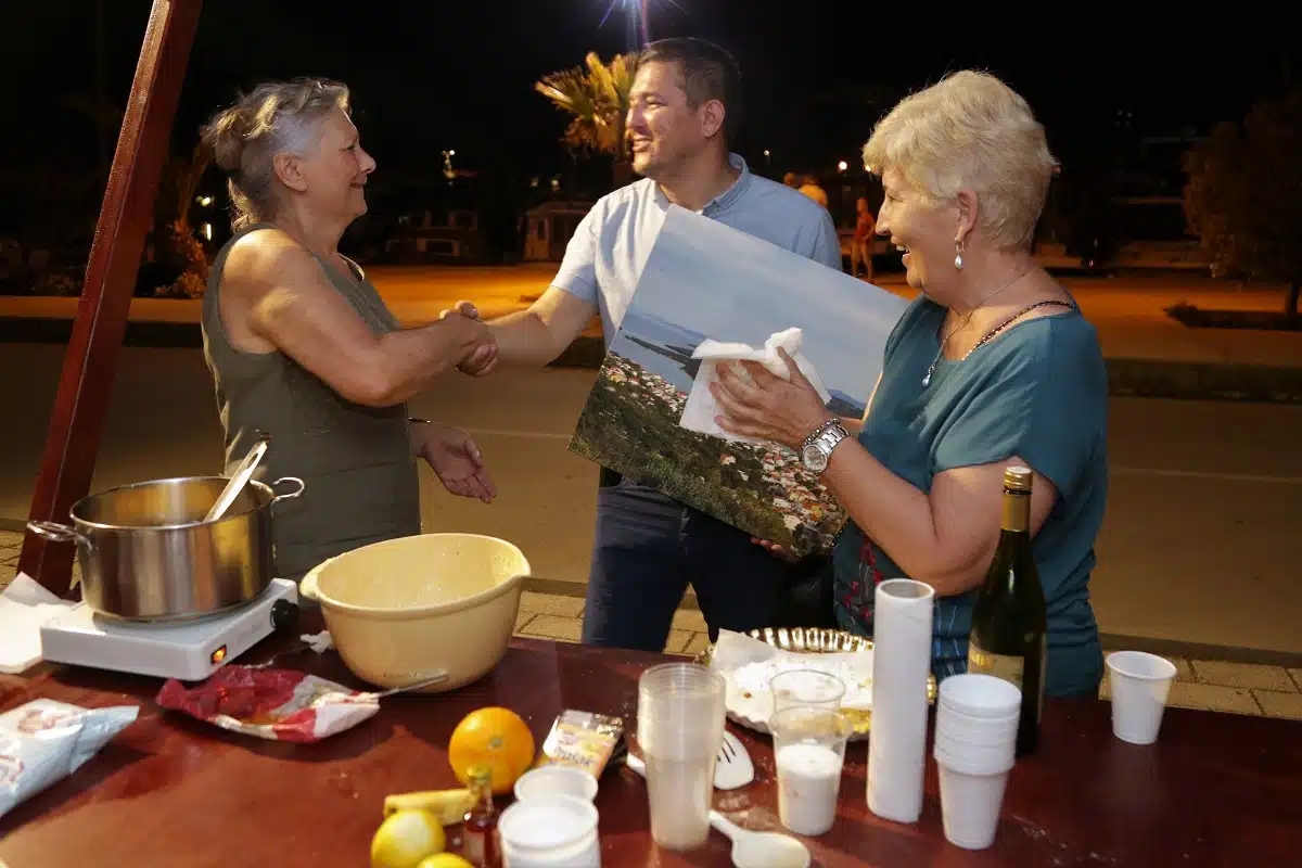 Bilo je tu prilično smiješnih i(li) zabavnih situacija s turistima koji su se prvi puta u životu sreli s fritulama, a odmah su “ubačeni” u natjecanje. Tako je bilo ekipom koja je pobijedila. Željka i Slavica iz Walesa sinoć su u Jezerima prvi put vidjeli fritule.