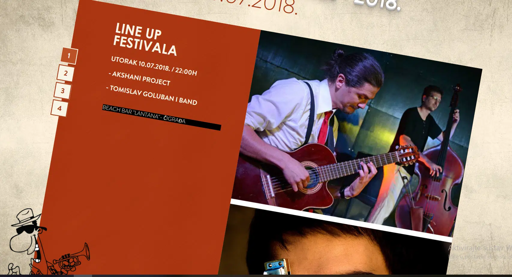 Prvu večer festivala, 10. srpnja imat ćete priliku čuti u kojim se sve žanrovima i stilovima glazbe koristi i na koji način svira usna harmonika, čiji je zvuk poveznica dvaju bendova što nastupaju na Čigrađi u restoranu ‘Lantana’. Tu će se najprije čuti, a i zaplesati, s novosadskim bendom ‘Akshani Project’ lidera Vukašina Miškovića, nakon čega će se ukazati prilika za nasmijati se uz humorističnog pjevača i usnoharmonikaša Tomislava Golubana i njegovog benda koji kombinira blues i tradicijskiu glazbu.