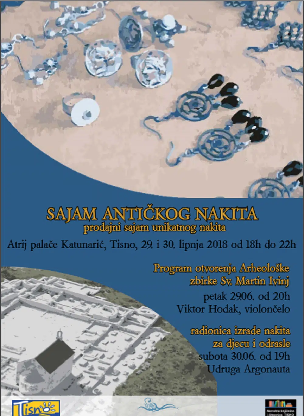 Udruga Argonauta, u suradnji s Narodnom knjižnicom I čitaonicom Tisno te Turističkom zajednicom Općine Tisno organizira prvi “Sajam antičkog nakita” koji će se održati od 29. do 30. lipnja 2018.g. u atriju palače Katunarić. Glavni cilj sajma je približiti posjetiteljima sadržaj Zbirke Sv. Martina, ukazati na vrijednost ovog arheološkog lokaliteta, ali i okupiti te prezentirati nakit obrtnika i umjetnika s našeg područja.