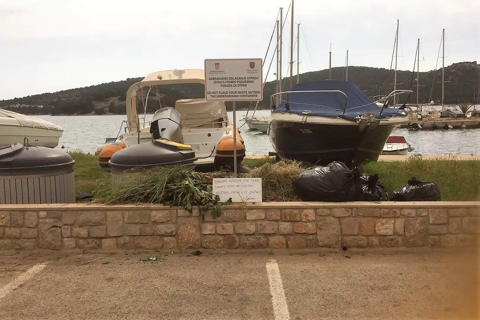 – UKOLIKO VLASNIK OVE TRAVE DANAS OVO NE UKLONI VEČERAS ĆEMO SVE ZAPALITI – napisao je ljutiti Tišnjanin na tabli ostavljenoj pored hrpe zelenog otpada, granja, lišća, trave, zemlje… iz nečije okućnice kojima su jučer zatrpani kontejneri u ulici Put Jazine.