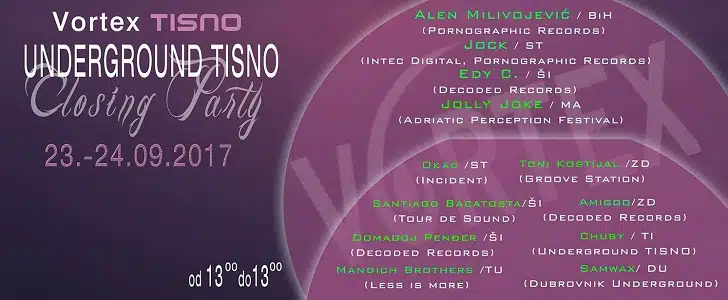 Underground Tisno se od svog osnutka 2005. godine prometnuo u događaj nezaobilazan za ljubitelje elektronske glazbe iz cijele Dalmacije, a ciljano na njega dolaze i partijaneri iz udaljenijeg okruženja. Sve do sada se održavao na Andriji, na najromantičnijoj tišnjanskoj plaži. No, ovogodišnji Underground Tisno Closing Party mijenja lokaciju, jer je odavna prerastao intimu Andrije.
