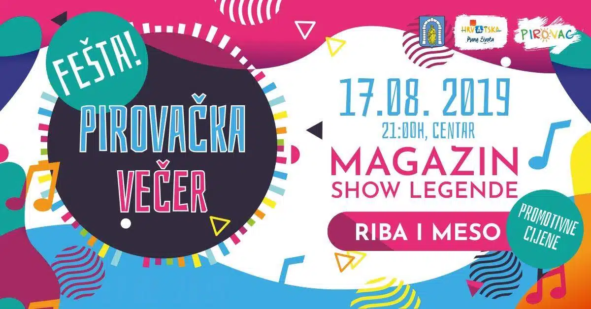 Za zabavu su Pirovčani angažirali prave majstore dalmatinskih fešti – grupu Magazin. Splitskom sastavu će u Pirovcu pomagati jedan šibenski – Show Legende. Oni su predgrupa Magazinu, nakon čijeg koncerta se vraćaju na pozornicu i osiguravaju zabavu do dugo u noć.
