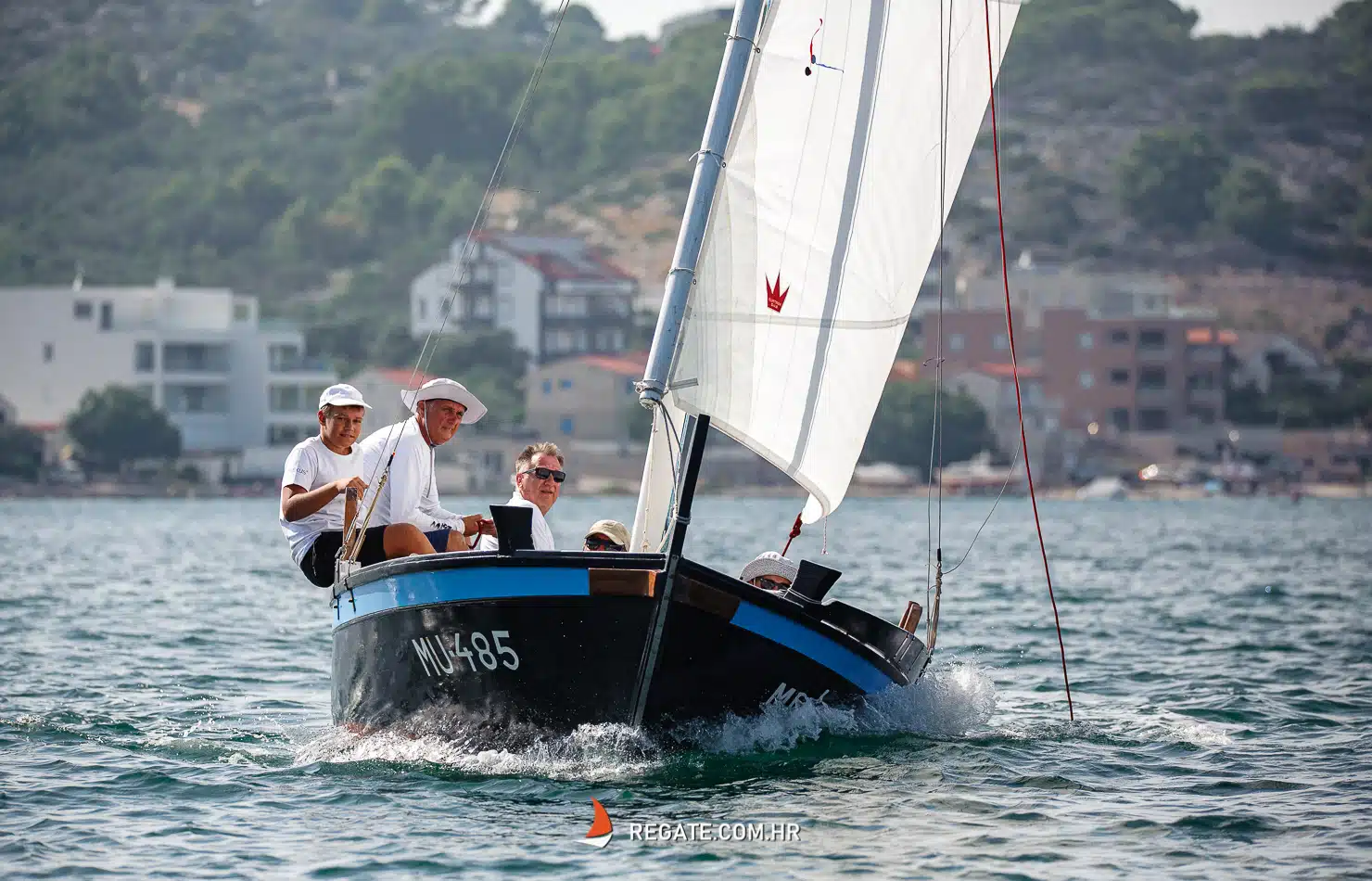 Gajeta “Tišnjanka” Ti1 s Dujom Perićem za kormilom bila je četvrta. Zbog snažnog juga od 15-ak čvorova jučerašnja regata pamtit će se kao jedna od težih. S vjetrom u krmu jedrilo sa zapadne strane mosta. Umjesto na Obali sv. Martina okupljanje je bilo na Obali hrvatskog viteza Josipa Dragičevća, ispred restorana Broščica, a startna linija je išla od Ciginog porta do Malog banja. Flota se okretala oko samo jedne bove pred Betinom.