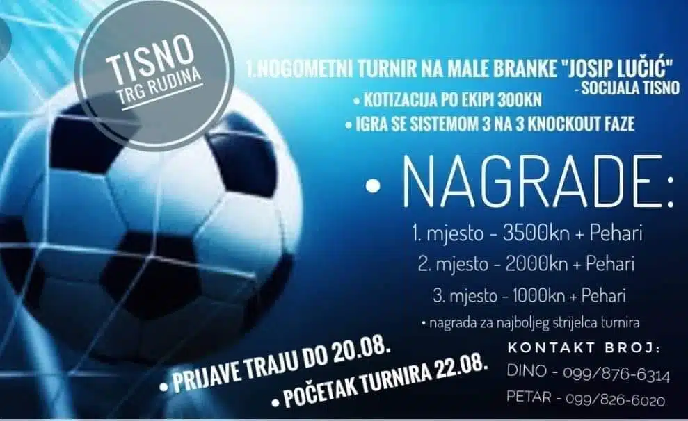 Uz pomoć DVD-a Tisno, “Ježinca” i TZ-a, petodnevni turnir sjećanja organiziraju “Shades” i “Kole”, dva kafića s Rudine iza kojih stoje dvojica trenutno najaktivnijih i najuspješnijih nogometaša iz Tisnog – Petar Petranić (NK Zagora) i Dino Kulušić (MNK Jezera). Njih dvojica, međutim, ne igraju s ekipama tih kafića, već zajedno s Antoniom Patalenom i Jakovom Mudronjom čine uspješnu i ljubiteljima malog nogometa dobro poznatu ekipu “Samo Bombaj”.