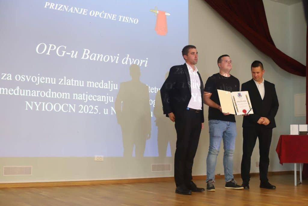 Priznanje Općine Tisno dobili su Ante Barić i Tome Henjak za osvojeno treće mjesto na hrvatskom veslačkom prvenstvu u dvojcu na pariće za kadete, Paula Jakovčev za osvojeno prvo mjesto u natjecanju brdskog biciklizma XC Zimske lige Dalmacije te drugo mjesto na Nacionalnom prvenstvu Hrvatske u brdskom biciklizmu, Vanja Vuksanić za osvojeno drugo mjesto na Nacionalnom prvenstvu Hrvatske u brdskom biciklizmu, Maro Uroda za izvanredne sportske rezultate i kroz njih ostvarenu promociju Općine Tisno, Vaterpolski klub Brodograditelj za izniman doprinos razvoju sporta, promociju Betine i Općine te Damir Vodanov Ban i OPG Banovi dvori za osvojenu zlatnu medalju na Svjetskom natjecanju maslinovog ulja NYIOOC 2025. u New Yorku.