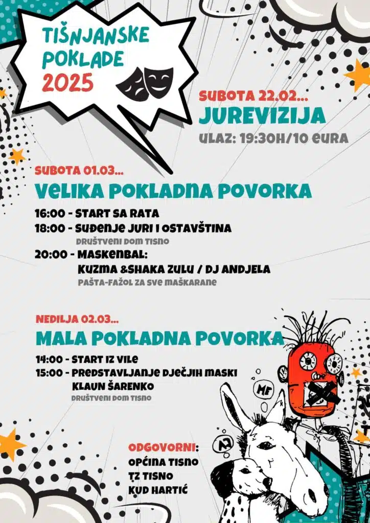 U subotu 22. veljače s početkom u 19.30 u Društvenom domu u Tisnom na rasporedu je jedinstveni tišnjanski pokladni festival lakih nota i teških riči.